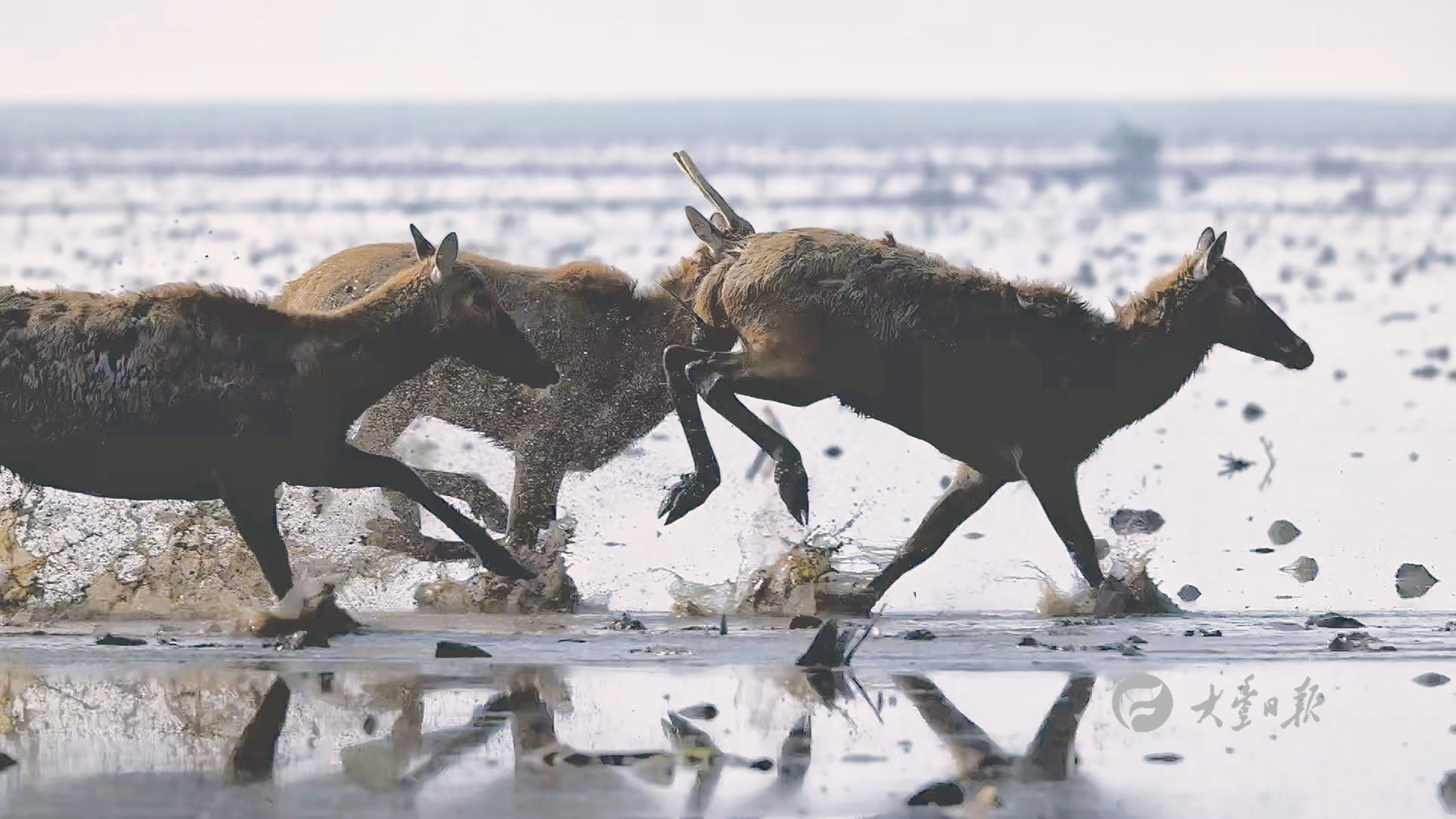 摄影师通过无人机捕捉到了一个100头左右的鹿群。洞庭湖草海广袤无垠,雄鹿身姿矫健肌肉紧绷,彰显着生命的力量,它们健硕的身影在草浪中若隐若现,仿佛是这片草海的守护者。母鹿体态丰腴,步伐轻盈而优雅,在阳光的映照下,散发着母性的温柔。而那些活泼可爱的小鹿紧紧跟在后面,蹦蹦跳跳奋力追赶着大部队,整个麋鹿种群在草海中奔跑的画面充满了生机与活力。