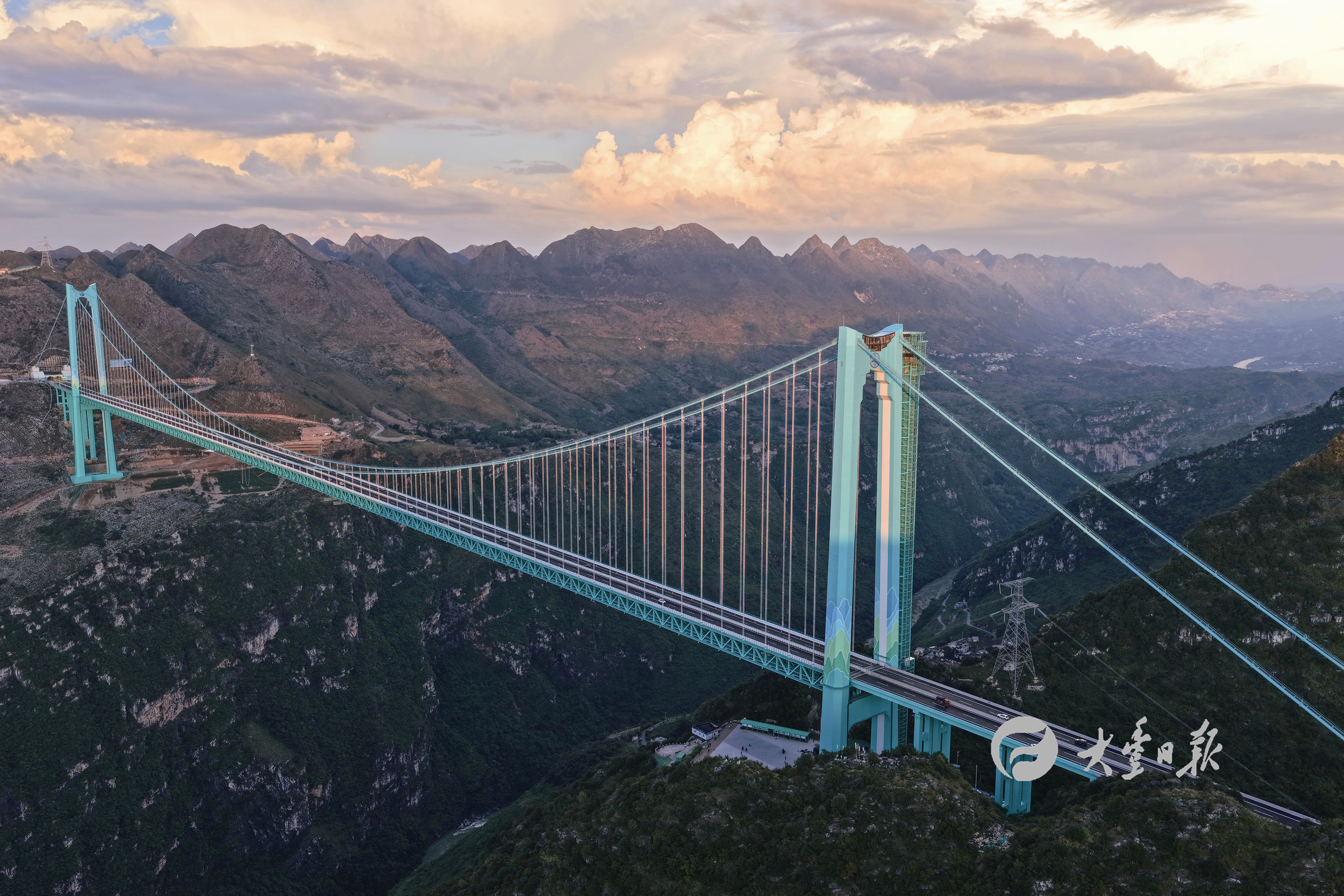 9月28日,世界第一高桥——贵州花江峡谷大桥建成通车。花江峡谷大桥是贵州六枝至安龙高速公路的控制性工程,大桥全长二千八百九十米,主跨径一千四百二十米,是目前世界山区峡谷第一大跨度钢桁梁悬索桥;其桥面距水面垂直高度六百二十五米,是新的世界第一高桥。