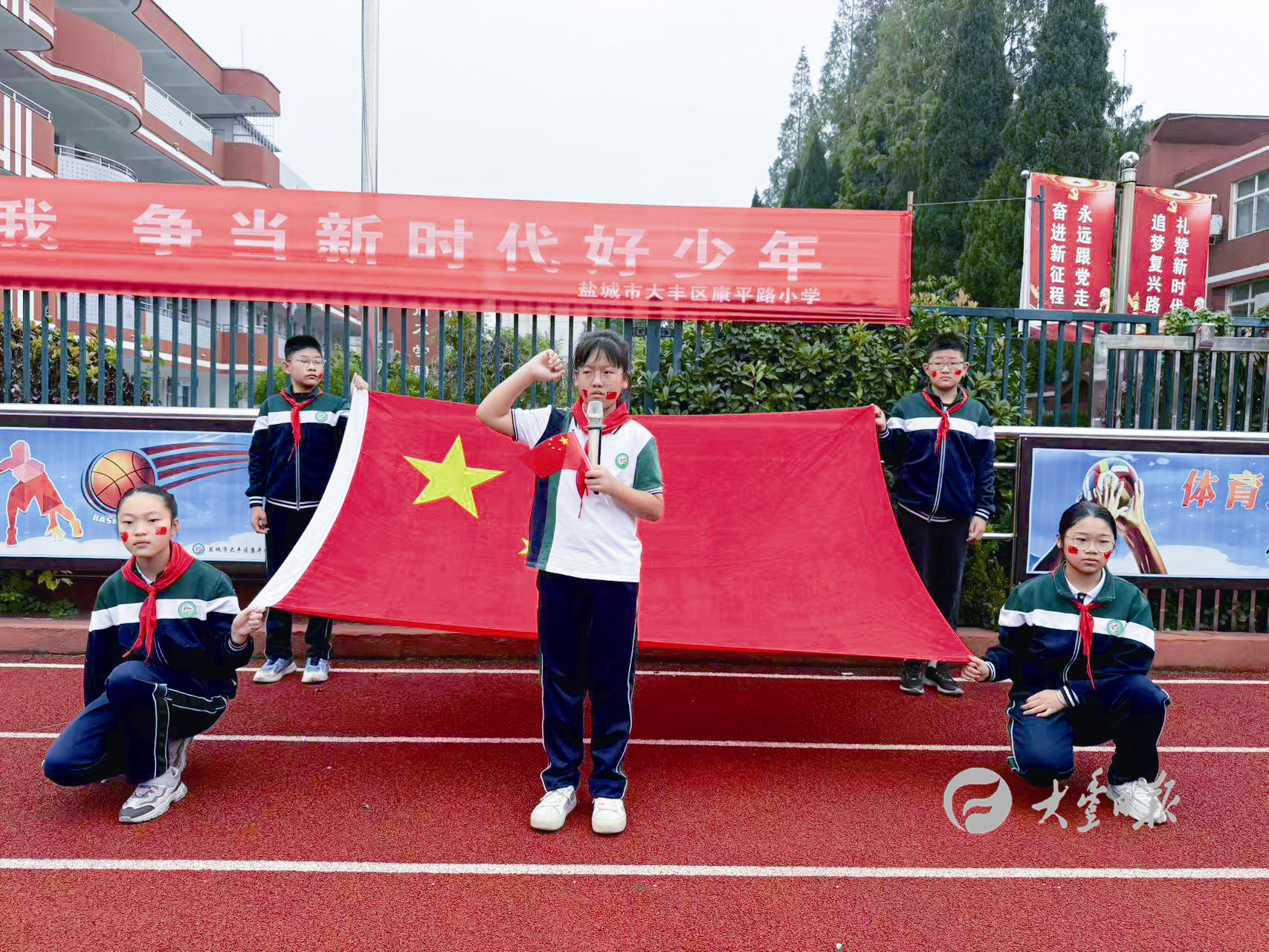 9月29日上午,大中街道康平路小学开展迎国庆升旗仪式暨“学生面向国旗宣誓”活动。全体师生庄严肃立,少先队员敬队礼,向国旗、向伟大祖国致敬。升旗仪式后,“五老”代表为孩子们讲述了革命时期小英雄王二小和刘胡兰的故事,并结合当下介绍了新中国取得飞速发展的举世成就,希望青少年们要筑牢“听党话、跟党走”的决心,勤奋学习、勇于实践、努力成长为民族复兴的栋梁之才。